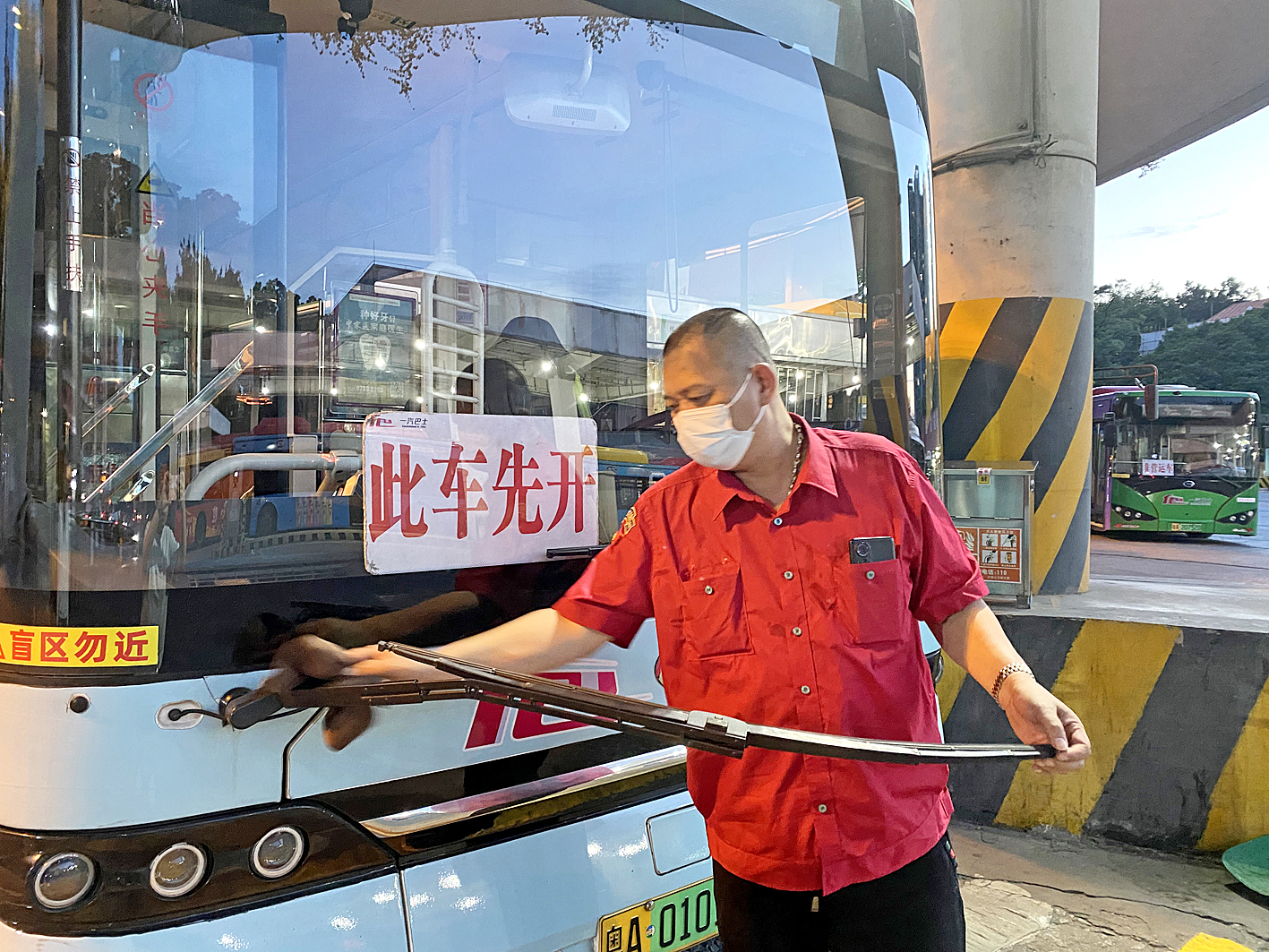 “臺風(fēng)天氣,大家駕車營運過程中一定要穩(wěn),多注意觀察周邊的行人及車輛,確保行駛安全。若遇到狂風(fēng)天氣,盡量避免將車輛停放在露天廣告牌下、大樹旁,遠(yuǎn)離高空墜物?!?/span>7月15日,一分公司安全員組織線路職工開展安全教育培訓(xùn)時,強(qiáng)調(diào)臺風(fēng)天氣安全行車的注意事項。分公司還提前安排專人對營運車輛的技術(shù)狀況進(jìn)行全面安全隱患排查,特別是加大對車輛制動、燈光及雨刮器等涉及雨天行車安全的機(jī)械部位檢查力度。